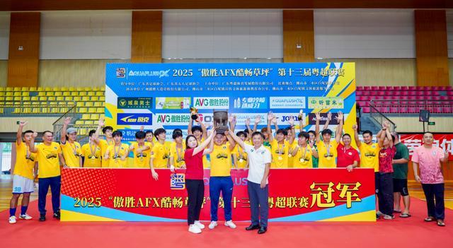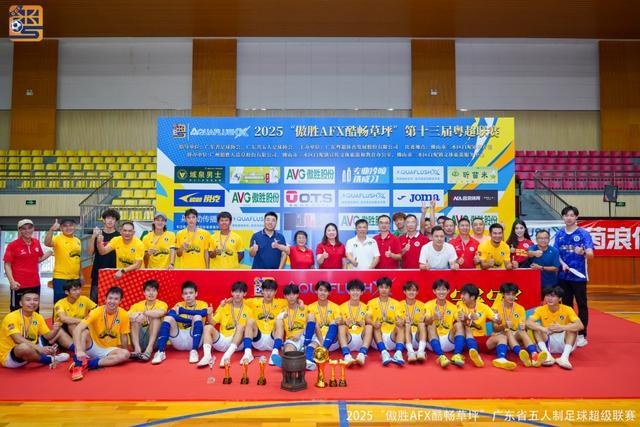 记者王伟报道 8月24日下午,2025“傲胜AFX酷畅草坪”粤超联赛在三水白坭体育馆落下帷幕,顺德新青年队5比4战胜深圳碧波索格爱尚酒店公寓队,以新军身份夺得粤超联赛桂冠,深圳碧波收获亚军,傳骋恩祈FC队夺得季军。