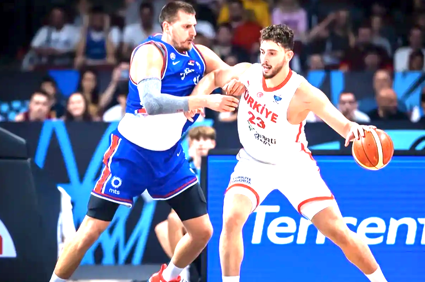 当男篮欧锦赛A组的终场哨声在球馆内响起,记分牌上95-90的数字定格的瞬间,土耳其球员相拥狂欢,而塞尔维亚阵营则难掩失落。这场被誉为 “本届欧锦赛最精彩对决” 的焦点战,不仅决定了A组头名归属,更让一位年轻球员的名字响彻整个篮坛 —— 阿尔佩伦・申京。面对拥有约基奇的塞尔维亚,这位火箭内线核心狂砍28分13篮板8助攻外加1次致命抢断的准三双数据,率领土耳其以五战全胜的完美战绩登顶A组,更与NBA 两届 MVP 约基奇的直接对话中不落下风。这样的表现,不仅让火箭球迷对新赛季充满期待,更让无数人畅想:若未来能与杜兰特形成 “一内一外” 的组合,这支火箭或将成为联盟中令所有对手胆寒的存在。