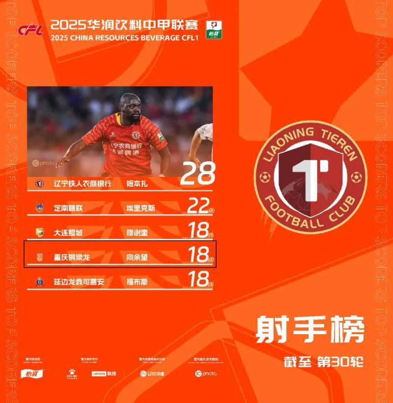 2025赛季中甲联赛向余望是中甲“本土射手王”。中甲联赛官方微信公众号
